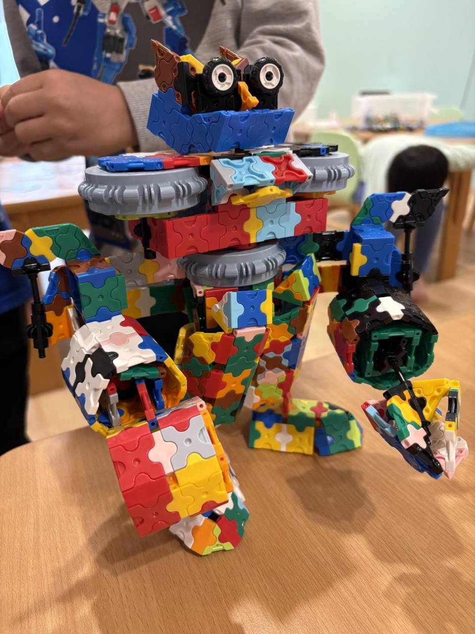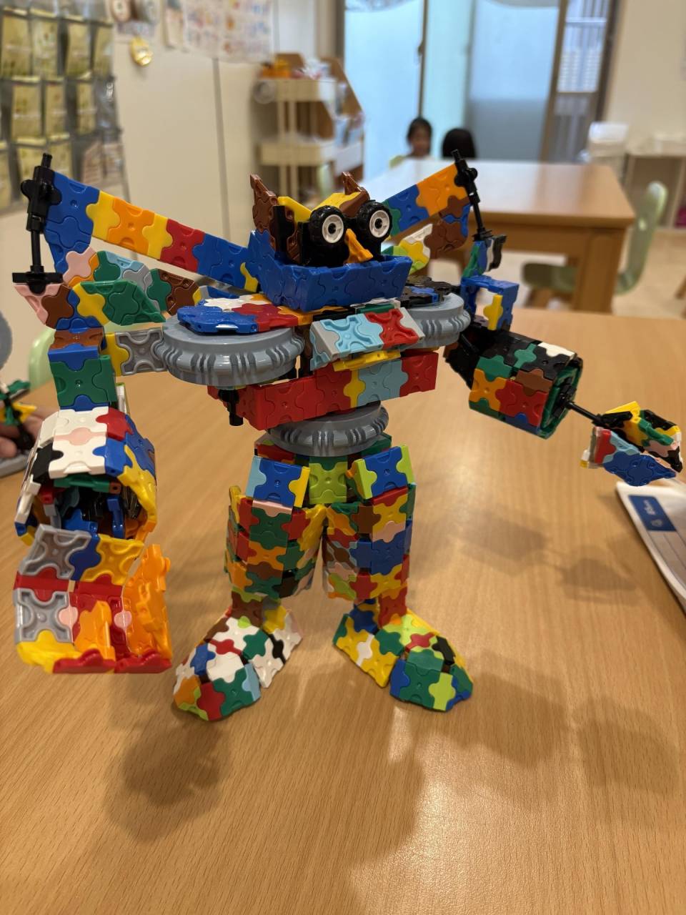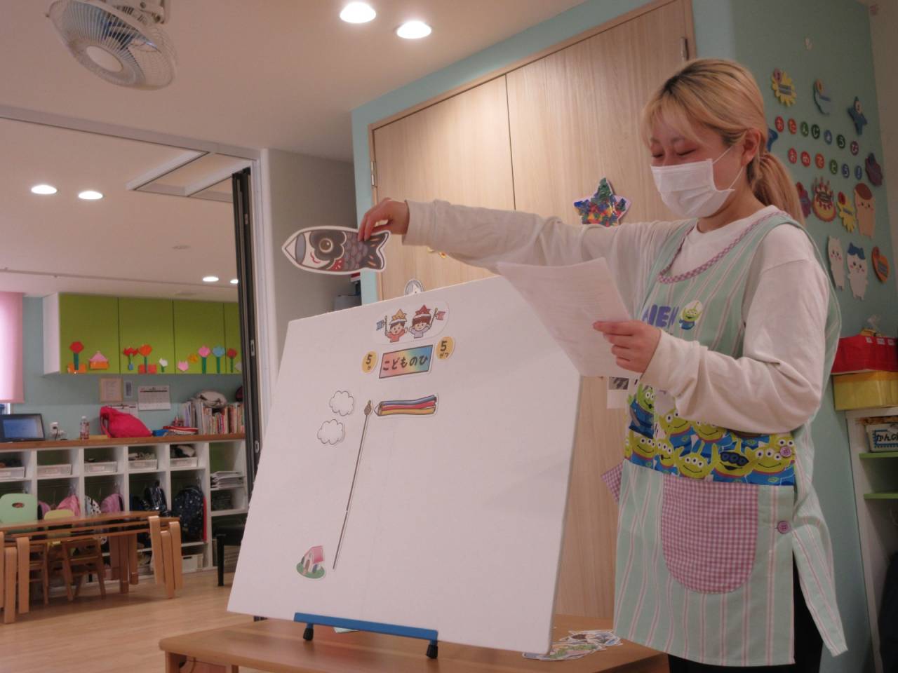 【武蔵野市】鯉のぼり集会を行いました【むくむくみらい保育園】 2025/05/02 五月人形が飾られています 玄関先 5月5日はこどもの日。保育園にも五月人形が飾られました。 子どもたちは登園降園の際に興味津々で眺めています。 鯉のぼり集会を行いました 全クラス 5月2日に鯉のぼり集会を行いました。 こいのぼりの由来をペープサートで先生からお話を聞きました。 そのあと、こいのぼりの歌をみんなで歌いました。 手作りのこいのぼりを振りながら、元気よく歌いました。 日常の様子 幼児クラス こちらは3歳児クラスの様子です。レゴブロックを使って大きな車や駐車場を作っています。 ものを作る想像力を養っています。 ラキューの作品 幼児クラス こちらは5歳児クラスの作品。ラキューというブロックを使って、大きなロボットを作りました。 ひとつひとつのパーツが小さいので、組み立ても複雑です。どうしたら二本足で立つか、手はどのくらい大きくするか、顔のパーツはどれを使うか、など・・・。一生懸命考えて、頑張って作ったそうです。 さすが年長クラスです。