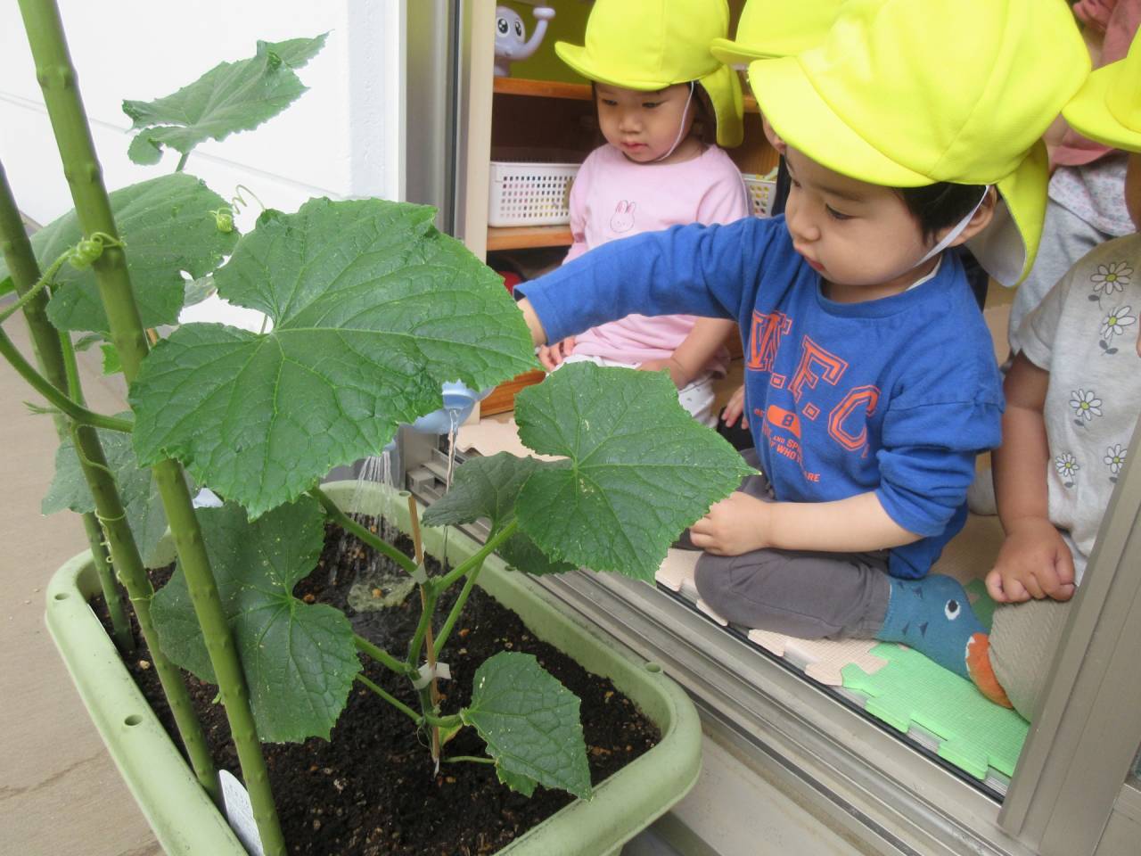【武蔵野市】日常の保育【むくむくみらい保育園】 2025/06/04 室内保育の様子 幼児クラス 今日は日常の保育の様子をつづっていきます。 こちらは室内保育の午後の様子です。みんなそれぞれ好きな遊びをしています。 最近の4歳児さんのお気に入りは塗り絵。いろんな絵に好きな色を塗って楽しんでいます。 きゅうりの苗を買いました 2歳児クラス 2歳児クラスの子どもたちが、近所のむさしの新鮮館ムーちゃん広場で野菜の苗を買いに行きました。 どの苗にしようか、みんなで相談して、きゅうりの苗を買うことにしました。 ベランダにプランターを置いて、そこに苗を植えました。毎日水やり当番の子が水やりをしています。 すでに大きくなり始めています!はやくきゅうりが食べられるようになるといいですね。