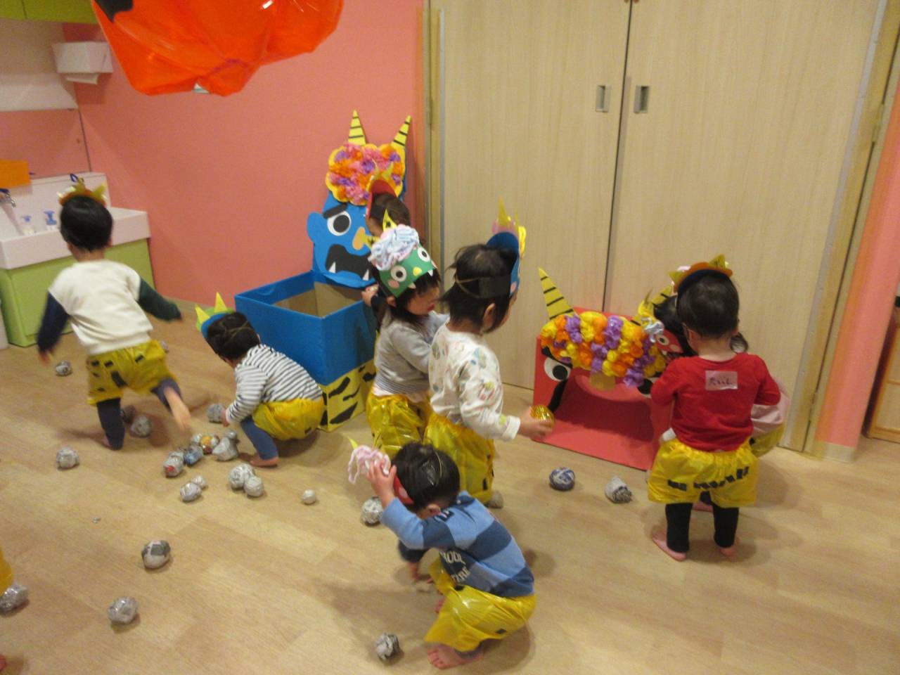 【武蔵野市】節分集会を行いました【むくむくみらい保育園】 全クラス2月2日に、節分集会が行われました。乳児クラスは鬼の箱に向かって新聞紙の豆をまきました。幼児クラス幼児クラスも鬼のお面をかぶったり、角をかぶったりしながら節分の由来などを聞いていまし…